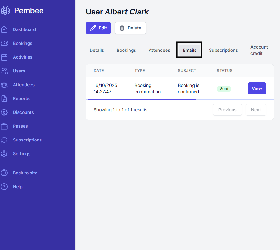 You can see what emails have been sent out to your users from Pembee.